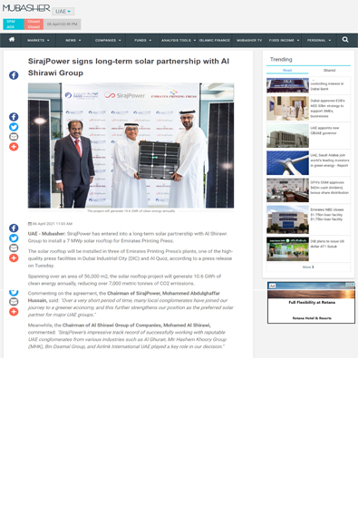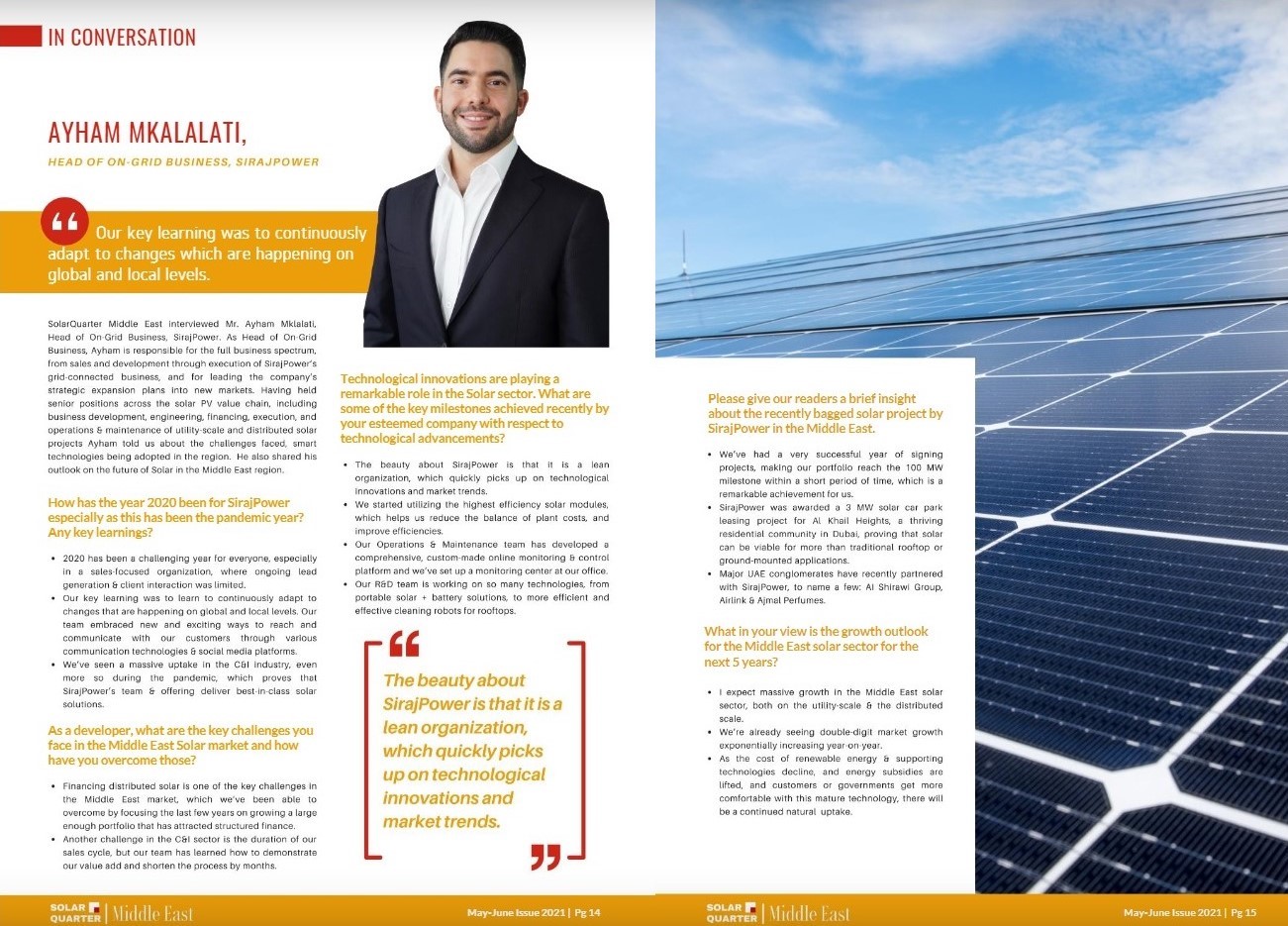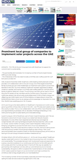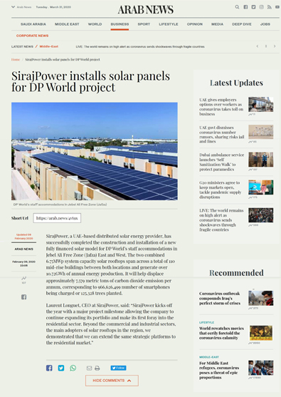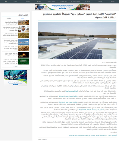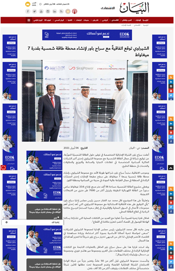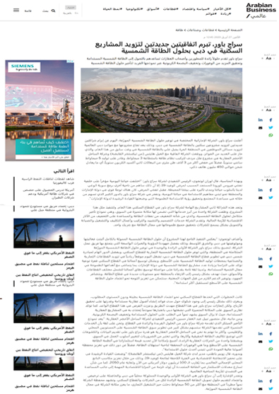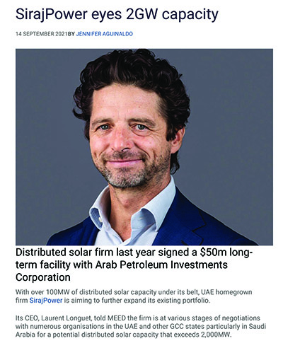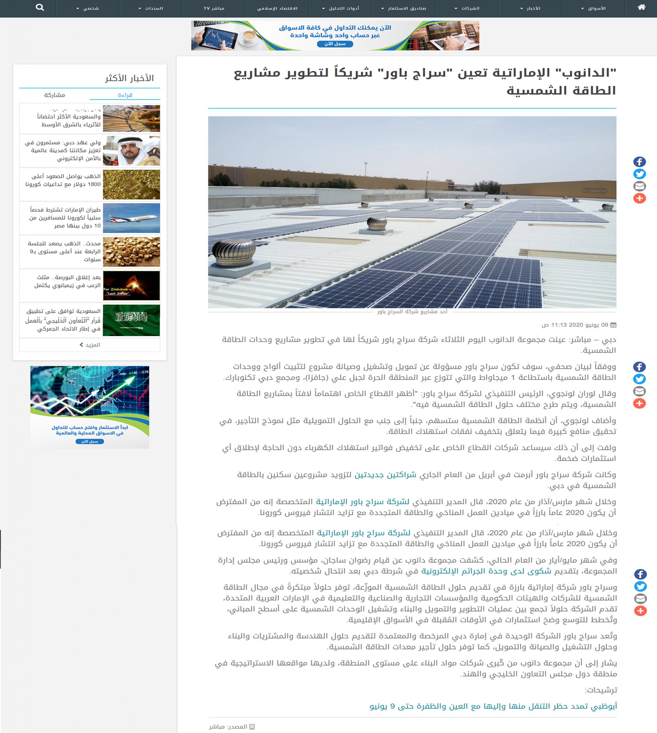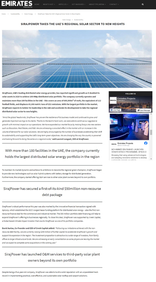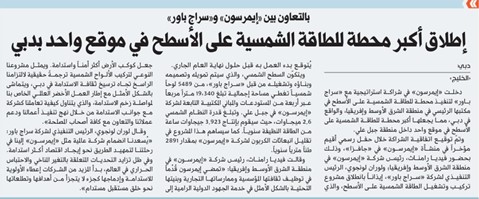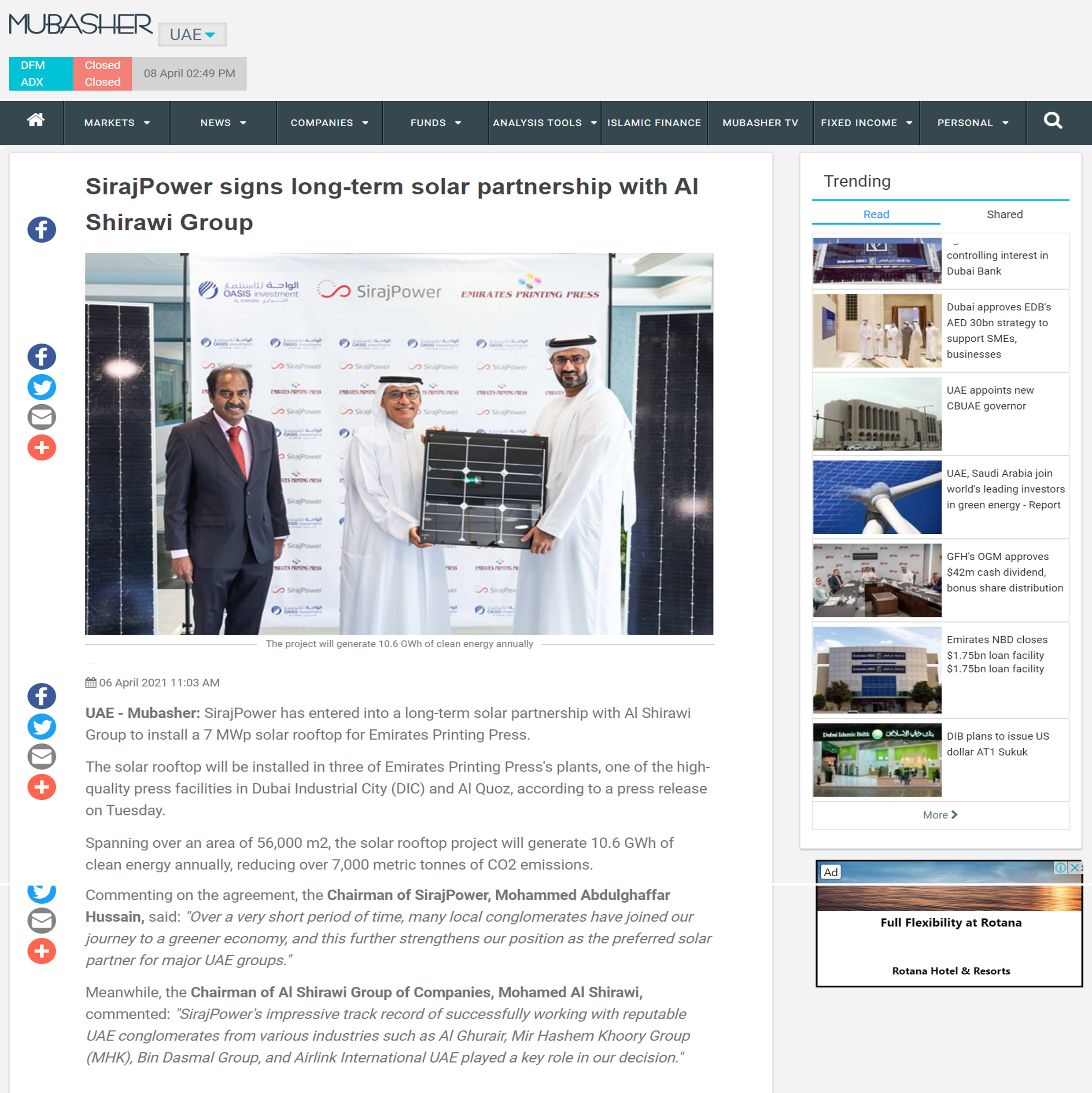 سراج باور تُوقع اتفاقية طويلة الأمد في مجال الطاقة الشمسية مع مجموعة الإمارات