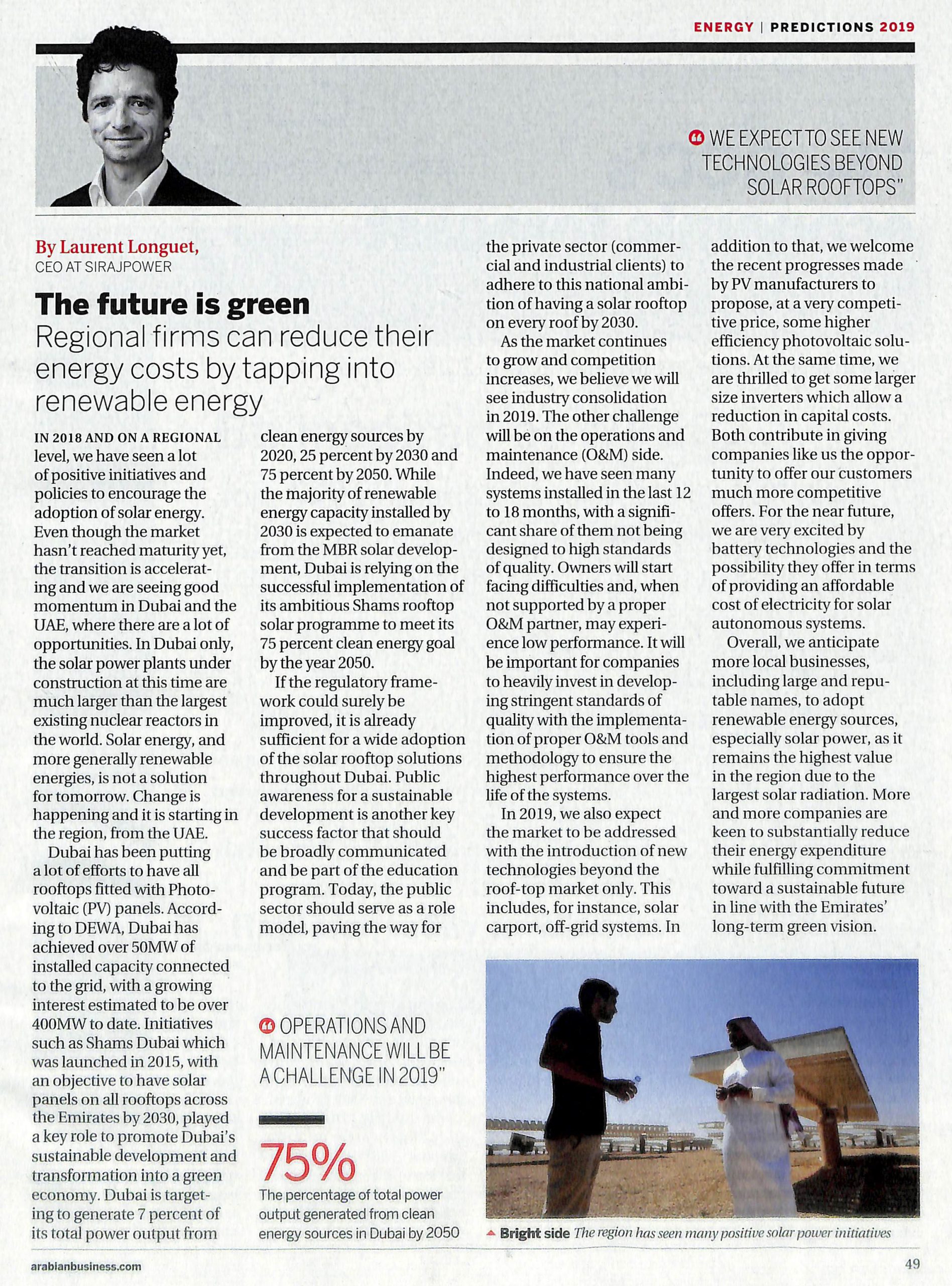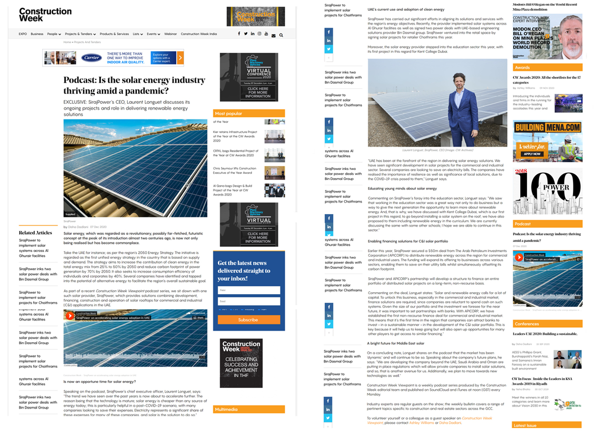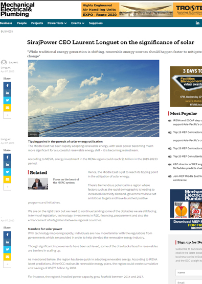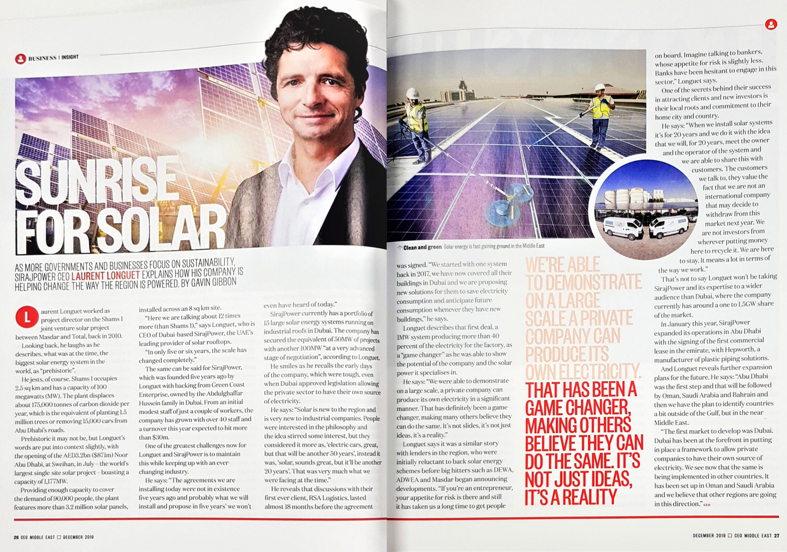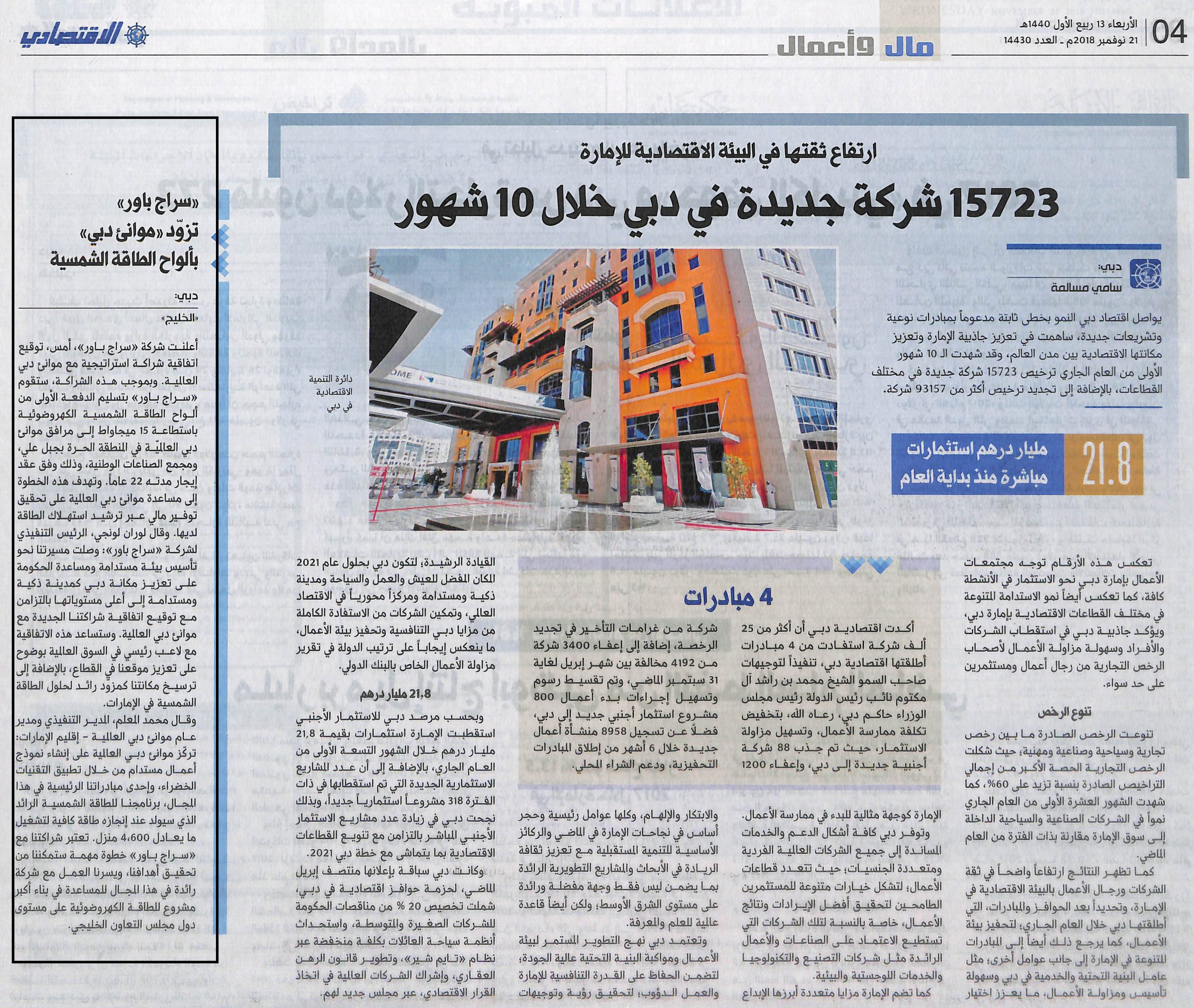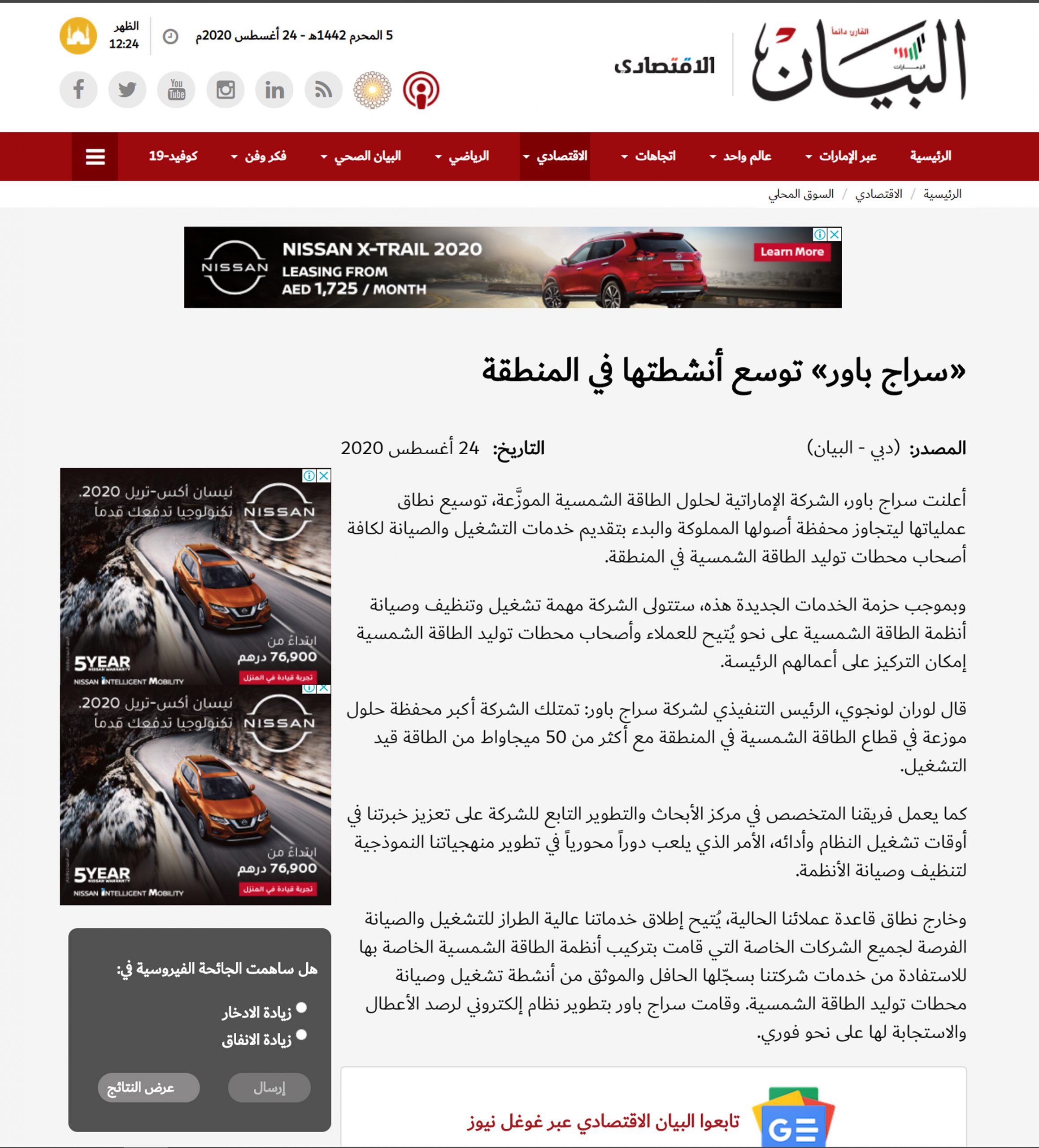 سراج باور تُوقع اتفاقية طويلة الأمد في مجال الطاقة الشمسية مع مجموعة الإمارات