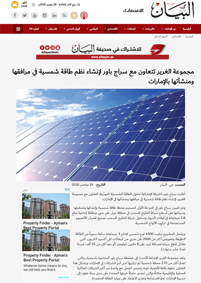 مجموعة الغرير تتعاون مع سراج باور لإنشاء نظم طاقة شمسية في مرافقها ومنشآتها بالإمارات