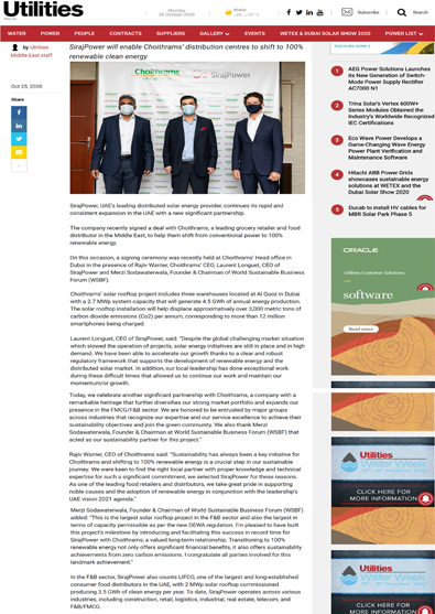 SirajPower will enable Choithrams’ distributin centres to shift to 100% renewable clean energy