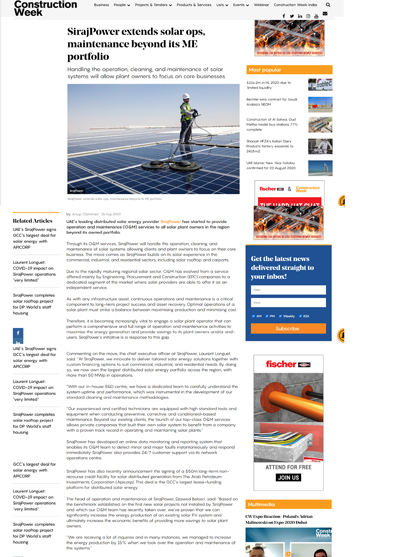 SirajPower extends solar ops and maintenance beyond its ME portfolio