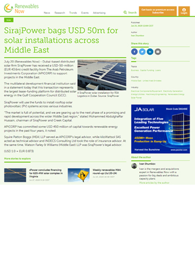 APICORP provides $50m credit facility to SirajPower for solar energy projects in ME