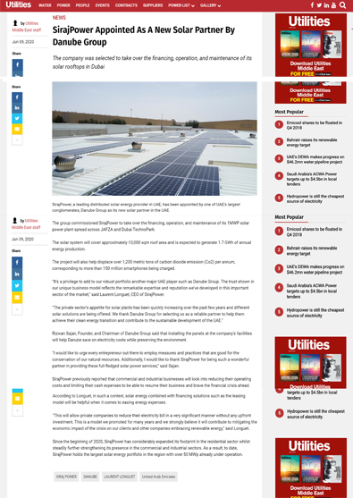 SirajPower Appointed As A New Solar Partner By Danube Group