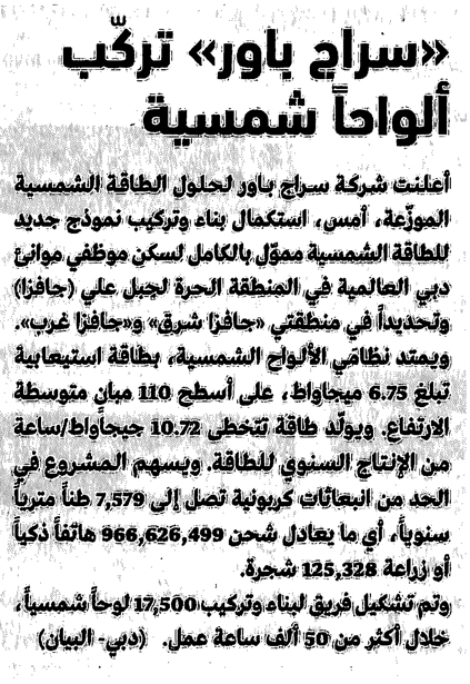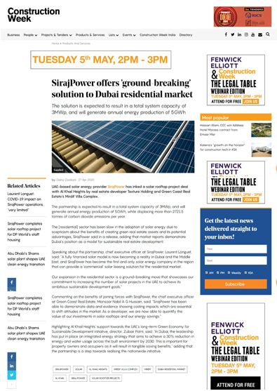 سراج باور تواصل تزويد المشاريع السكنية في دبي بالطاقة الشمسية المستدامة