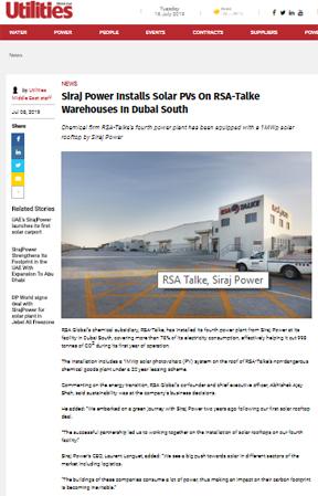 SirajPower installs Solar PVs on RSA-Talke Warehouses in Dubai South