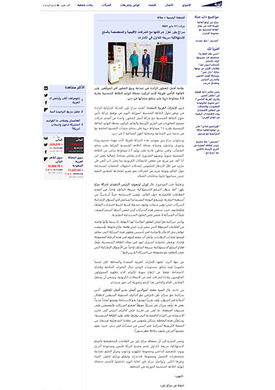 الشيراوي توقع اتفاقيةً مع سراج باور لإنشاء محطة طاقة شمسية بقدرة 7 ميغاواط