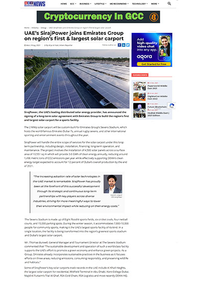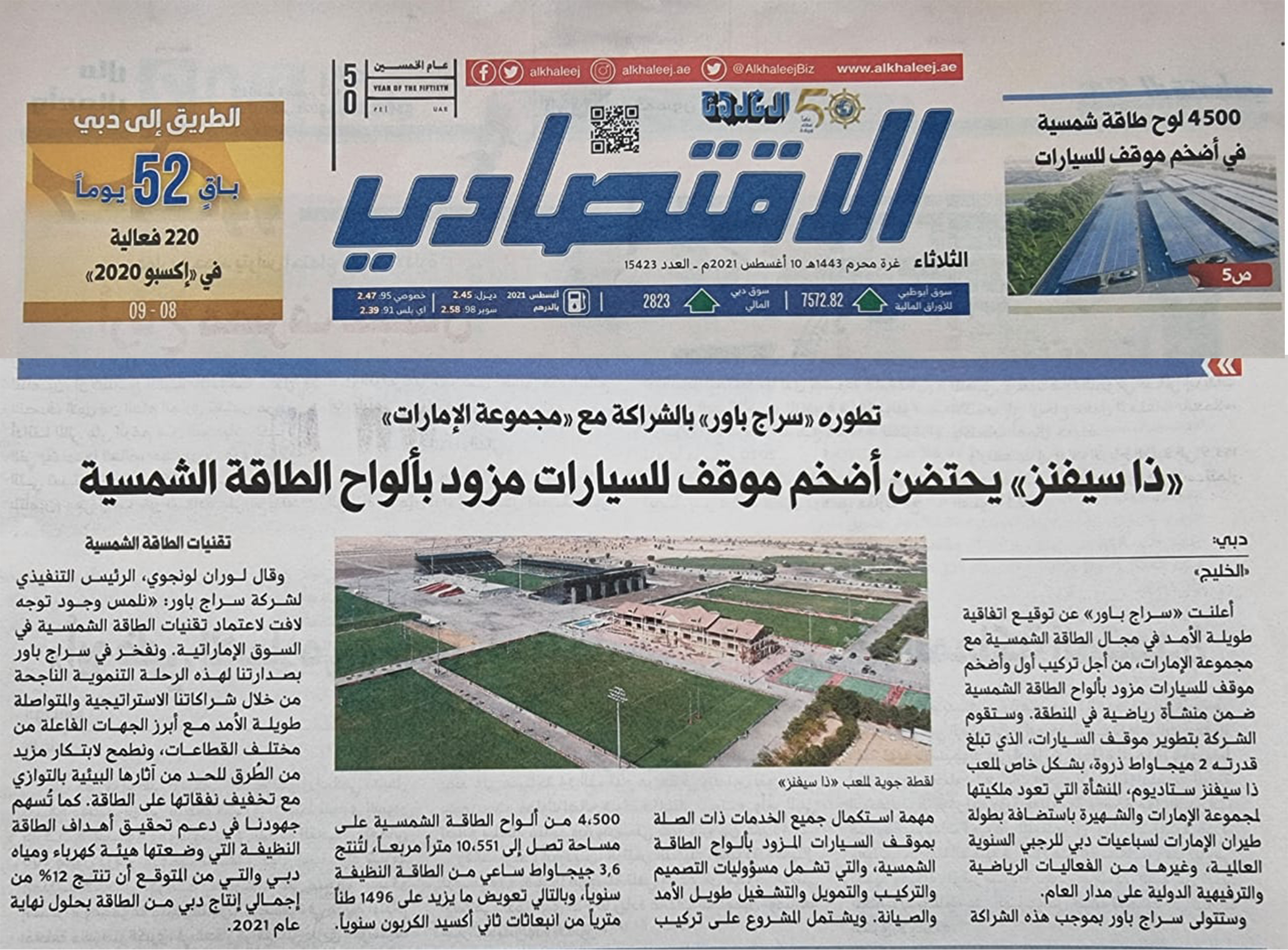 UAE’s SirajPower joins Emirates Group on region’s first & largest solar carport