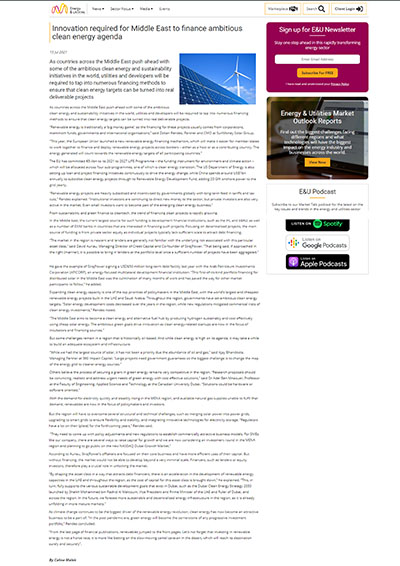 Innovation required for Middle East to finance ambitious clean energy agenda