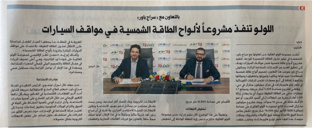 مجموعة اللولو العالمية تُنفذ مشروعاً رئيسياً رائداً وصديقاً للبيئة بالتعاون مع سراج باور